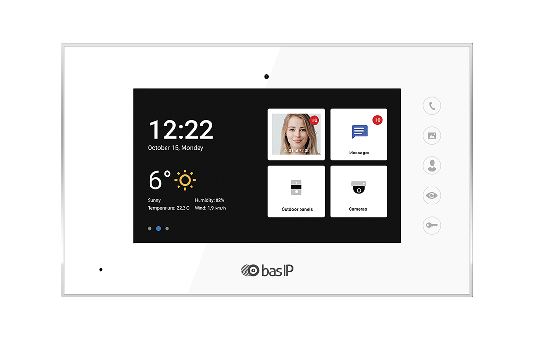 این تاچ پنل هوشمند با پشتیبانی از سیستم عامل آندروید، همچنینی پشتیبانی از SIP ضمن ارائه بهترین خدمات در بخش آیفون، امکان ارائه سرویس های ارزش افزوده مانند میزبانی از نرم افزار خانه هوشمند، نمایش دوربین ها، ارتباط بین واحد های و لابی من، سیستم امنیتی و … را برای شما فراهم خواهد کرد. لذت استفاده از یک آیفون هوشمند را با محصولات باس ای پی BAS-IP تجربه کنید.