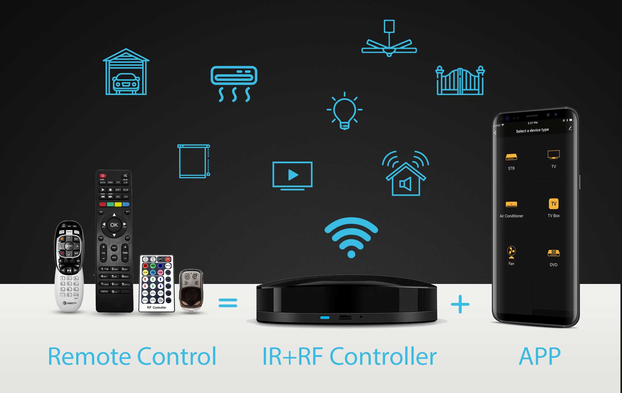 فقط با یک کلیک، تمامی ریموت کنترل های خود را داخل کنترلر هوشمند ذخیره کنید و پس از آن تمامی فرامین را از طریق نرم افزار خانه هوشمند Smart Life صادر کنید. شما می توانید ریموت کنترل تمامی تجهیزات خانگی مانند تلویزیون، ماهواره، سینما خانگی، پرده برقی، پنکه برقی، فن سقفی، چایی ساز و هر گونه وسایل برقی که دارای ریموت کنترل با سیگنال IR و یا RF 433 یا RF 315 را داخل کنترل هوشمند ذخیره کنید.
