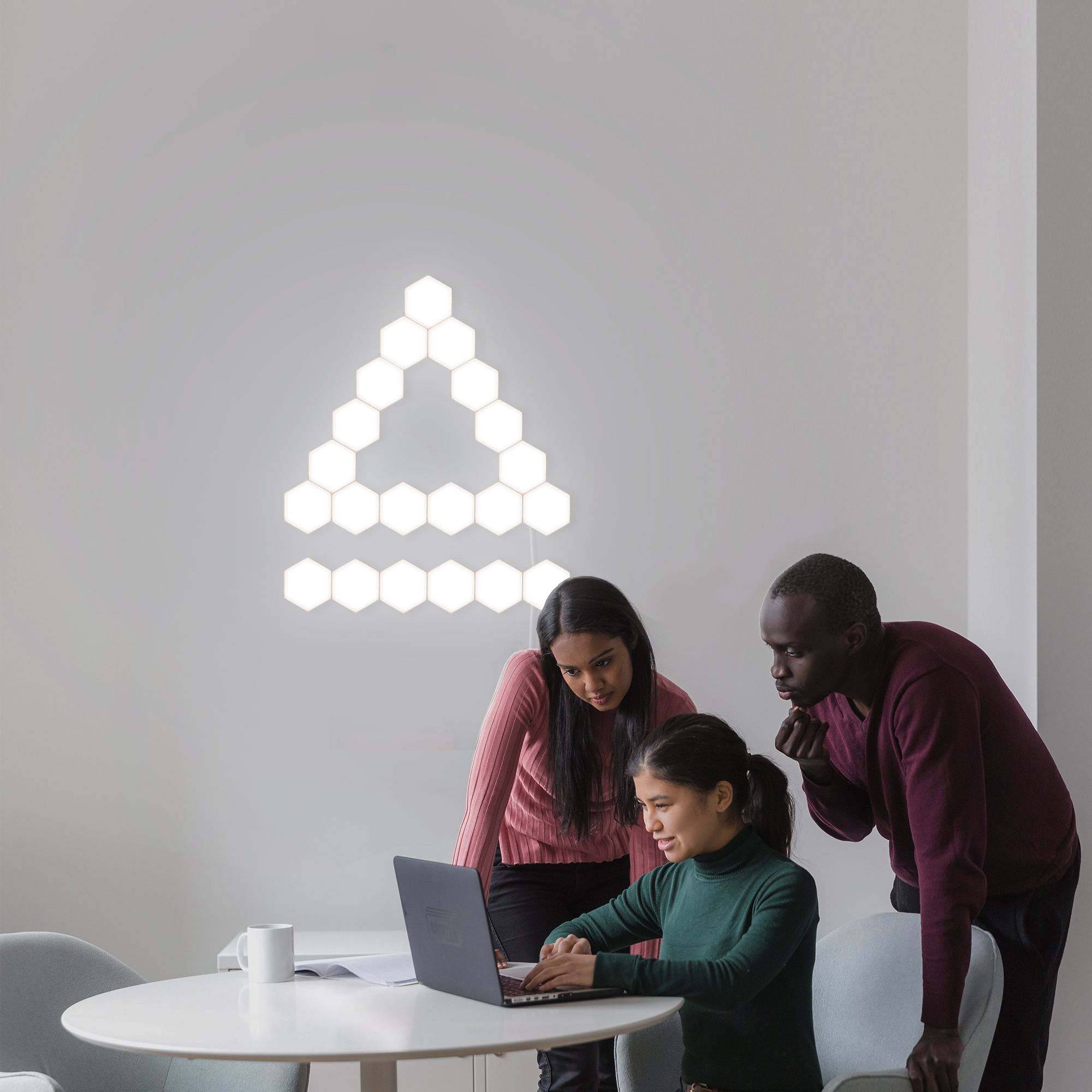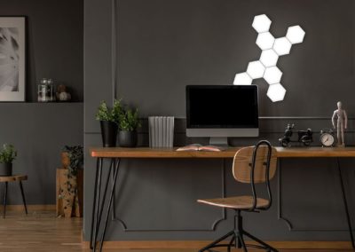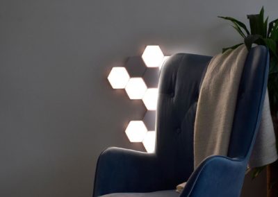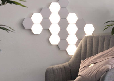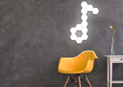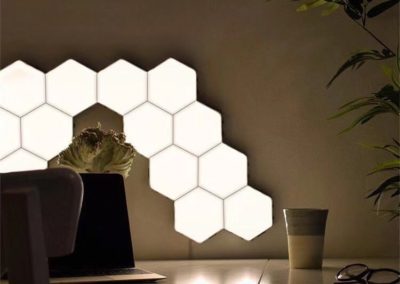 کاشی های مغناطیسی یا همان پالیگون لایت، یک منبع نوری بسیار جذاب برای طراحی نور بر روی دیوار خانه هوشمند شماست. شما می توانید بی نهایت مدل مختلف را با این صفحه های نورسی لمسی در زمان مختلف در خانه خود ایجاد کنید. نور یکدست و کیفیت بالای این نور می تواند نقش یک آباژور دیواری جذاب را برای خانه شما ایفا کند.