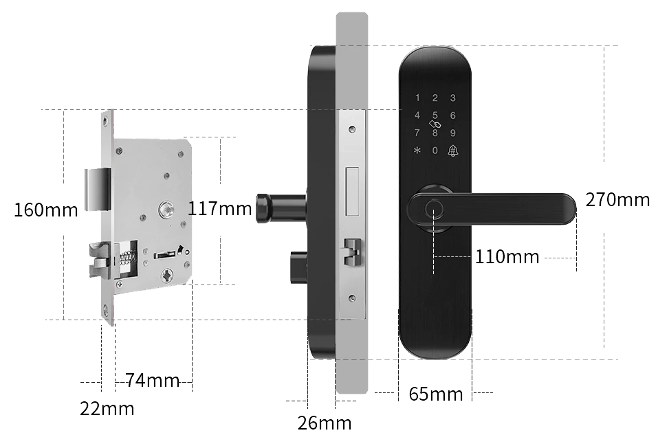 قفل هوشمند مدل SL200 قابلیت نصب بر روی تمامی درب های چوبی و فلزی را دارد. برای محاسبه اندازه های مورد نیاز جهت طراحی و نصب قفل بر روی درب می توانید از مرجع زیر استفاده کنید
